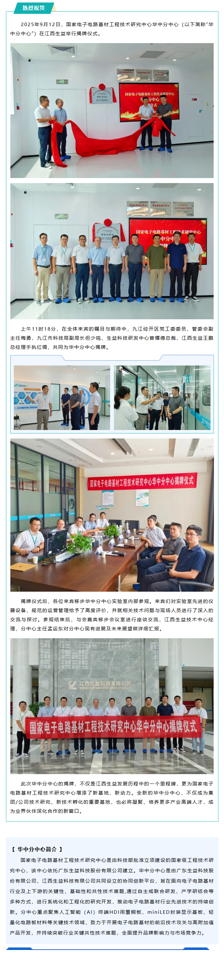 熱烈慶祝國家電子電路基材工程技術(shù)研究中心華中分中心揭牌