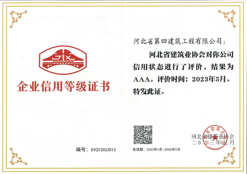 2023年河北省建協(xié)AAA信用等級證書