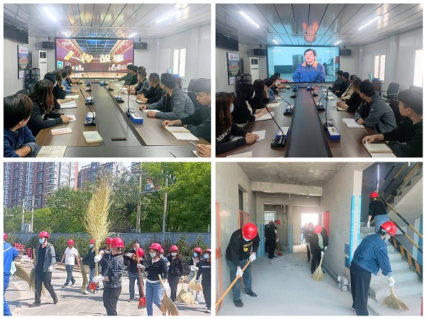 觀影結(jié)束后,黨員們走出會議室,戴好安全帽后,前往施工現(xiàn)場。目前,西三教項目正值施工黃金期,現(xiàn)場機械運轉(zhuǎn)不停,施工人員在各自的崗位上忙碌著。黨員們目睹了現(xiàn)場熱火朝天的施工景象,內(nèi)心也被感染,迅速認領各項任務,分成5組趕赴B區(qū)1#至5#住宅樓,干脆利索地投身到勞動中。有的穿梭于材料堆放區(qū),將沉重的周轉(zhuǎn)材料搬運至指定地點,汗水很快浸濕了衣衫;有的手持掃帚、鏟子,仔細清理施工場地的雜物與灰塵,不放過任何一個衛(wèi)生死角;有的發(fā)揮專業(yè)特長,協(xié)助施工人員檢查安全隱患。大家相顧無言卻又默契十足,3個小時過去了,慢慢消失的是垃圾雜物,漸漸高漲的是勞動氣氛,越來越清晰呈現(xiàn)的是干凈整潔的施工現(xiàn)場。