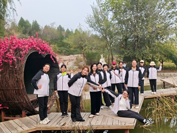 抵達抱犢寨準備登山前,主辦方進行了熱情洋溢的動員,并邀請專業(yè)人員帶領全體參與者開展熱身活動。此次登山路線以臺階路為主,目的地設定為抱犢寨索道中轉站。隨著主辦方一片區(qū)號長“出發(fā)”一聲號令,隊伍排列成1個縱隊靠右前行,主動為山間其他游客讓行,有效避免了擁堵。途中,幾名女職工因臺階較陡、強度較大,步伐緩慢,七分公司李植利立刻放慢腳步說:“跟著我節(jié)奏走,咱一步一步來,不急!”公司工會主席李懷生堅持當好“帶頭人”,始終走在隊伍前方。登山過程中,大家進一步增進了解、深化友誼,團隊的凝聚力與向心力愈發(fā)濃厚——而這種“不落下一個人”的團結協(xié)作精神,正是公司沖刺四季度、攻克工作難點的重要保障。