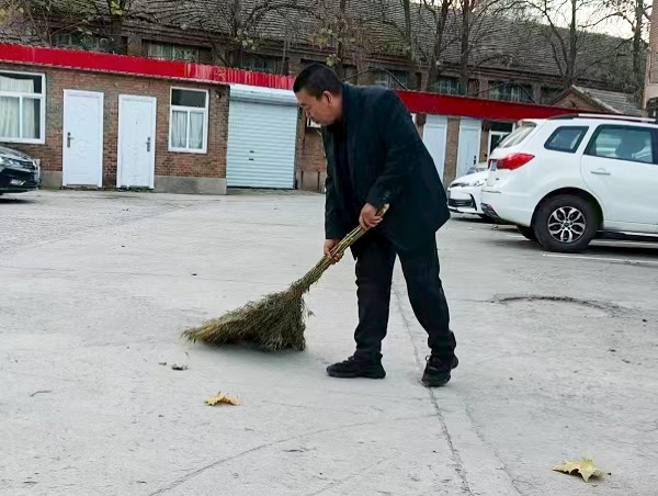 作為兼任分公司院內(nèi)五家單位的警衛(wèi),王亮沒把“守大門”當(dāng)成簡單的值守,而是用“多走一步、多想一層”的主動,把院區(qū)安全與服務(wù)做得既扎實(shí)又貼心。夜班值守時,他更把“巡查”做成了“安全隱患排查”,仔細(xì)檢查門窗、消防器材及車輛停放。有次巡查,他注意到有車輛未關(guān)車窗,當(dāng)即聯(lián)系了車主,確保安全。而每天清晨的打掃,更像是他對“家”的細(xì)致守護(hù)的延伸。每天六點(diǎn)天剛亮,多數(shù)同事還沒出門,他已經(jīng)扛著掃帚、拎著簸箕,在機(jī)關(guān)前后院忙活開了。落葉飄在花叢里,他就蹲下來一片一片撿;紙屑卡在磚縫里,他用小夾子慢慢夾出來,連墻角的雜草都要順手拔掉?!霸凼刂@院兒,不僅要保安全,更要讓大伙兒上班看見清亮的環(huán)境,心里敞亮?!蓖趿恋脑捳Z樸實(shí)無華。在他眼里,“警衛(wèi)”不只是一份工作,更是守護(hù)分公司“家”的責(zé)任,這份盡責(zé)與主動,正是“把院區(qū)當(dāng)自家”最樸素的表達(dá)。