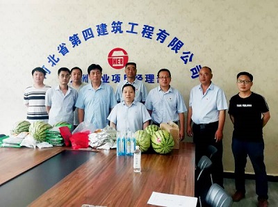8月11日上午,公司黨委副書記、工會主席李懷生到二分公司九洲項(xiàng)目部,對炎炎夏日奮戰(zhàn)在一線的全體職工進(jìn)行慰問,二分公司黨總支部書記、工會主席孫立鋒一同參加。