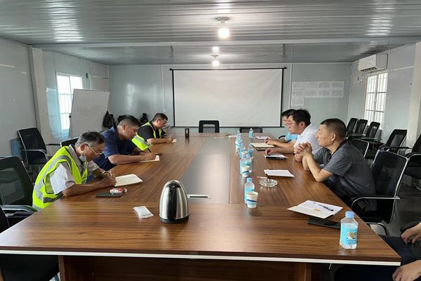張新煜一行和項(xiàng)目經(jīng)理王鵬飛、業(yè)主項(xiàng)目負(fù)責(zé)人王立杰共同對(duì)現(xiàn)場(chǎng)進(jìn)行了檢查。一行人到達(dá)生料均化庫(kù),對(duì)庫(kù)體的整體外觀質(zhì)量、門(mén)洞口的方正進(jìn)行了檢查,張新煜稱(chēng)贊庫(kù)體總體質(zhì)量控制較好,庫(kù)體的整體垂直度、混凝土外觀顏色把控到位。順著現(xiàn)場(chǎng)主道路查看燒成窯中1#、2#、3#墩體時(shí),張新煜對(duì)正在施工的窯中墩體模板、螺桿排布提出表?yè)P(yáng),要求項(xiàng)目部重視并做好墩體整體施工完后的螺桿切除、防銹工作,同時(shí)做好對(duì)周轉(zhuǎn)材料、機(jī)械的控制。在煤粉制備單體工程,他查看了框架柱垂直度并表示滿意,要求項(xiàng)目部在施工過(guò)程中注意細(xì)節(jié)把控,做精品工程,尤其是在柱接茬位置、庫(kù)體垂直度和防流墜措施等方面,要嚴(yán)格要求管理人員及施工班組做到精益求精。最后張新煜要求項(xiàng)目做好防暑降溫工作。在檢查過(guò)程中,王立杰代表業(yè)主表達(dá)了對(duì)我公司的感謝以及對(duì)在建項(xiàng)目在質(zhì)量、進(jìn)度及安全文明施工方面的高度認(rèn)可,并表態(tài)后期產(chǎn)業(yè)園項(xiàng)目希望繼續(xù)與我公司合作。