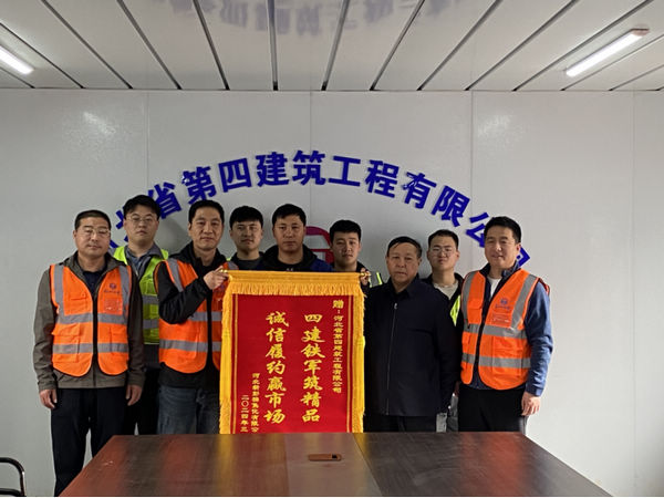 3月29日上午,河北普陽鋼鐵集團新彭楠焦化有限公司副總經(jīng)理李文秀、新彭楠焦化項目負責人王磊,來到河北四建三分公司新彭楠焦化項目部會議室,感謝項目部春節(jié)不停工保送煤,高質(zhì)量地完成節(jié)點任務,并鄭重地將寫有“四建鐵軍筑精品 誠信履約贏市場”的錦旗送到正在項目檢查的分公司經(jīng)理李書偉的手中。三分公司副經(jīng)理劉贊敏、項目部經(jīng)理甄雄浩等一同參加。