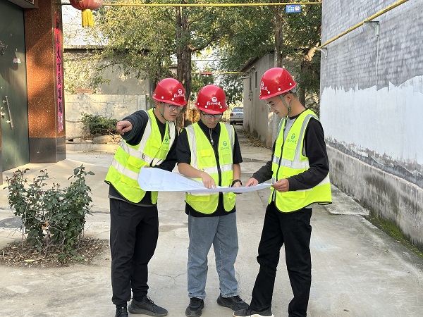 因地下管線復雜,施工中,難免會出現(xiàn)挖斷地下管道的情況,如果被挖斷的管道不能及時得到修復,會影響村民用水。為最大限度減輕施工對村民生活的影響,項目部做實做細施工前的準備工作,先聯(lián)系熟悉原敷設管道的村民,摸清摸透地下管道具體位置后再開挖,如遇敷設管線較多的部位,安排技術(shù)嫻熟的師傅人工挖掘安裝管道,同時安排人員準備好搶修的材料管件,一旦挖斷管道,立即現(xiàn)場搶修。在同一現(xiàn)場施工的其它單位幾乎每天都有因耽誤村民用水被投訴的情況,元氏管網(wǎng)項目施工的標段很少發(fā)生。“管溝挖得深、回填干得快,而且,很少耽誤俺們用水?!北O(jiān)理單位到現(xiàn)場檢查時聽到老百姓對元氏管網(wǎng)項目部如此評價。甲方也經(jīng)常在微信工作群夸贊該項目部施工的標段是“放心工地”。