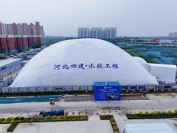 該項目基坑氣膜長55米、寬60米、高20.5米,于2024年8月14日正式投產(chǎn)使用,具有安裝簡單、可循環(huán)利用、綠色環(huán)保及節(jié)能增效等顯著特點,是分公司大力推行綠色施工、文明施工、環(huán)保施工的一項重要舉措。(四分公司)