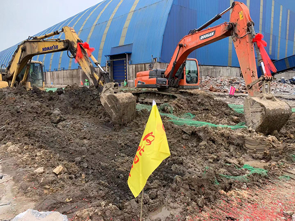 5月2日和3日連續(xù)降雨,打樁后產(chǎn)生的淤泥經(jīng)大雨沖刷散布現(xiàn)場各處,雨后項目全體人員開始清淤工作,因環(huán)保要求白天不宜外運出場,管理人員便夜間加班“作戰(zhàn)”,爭分奪秒為后續(xù)工作創(chuàng)造工作面。白天平整場地、夜間倒運淤泥,經(jīng)過項目全體人員的連日奮戰(zhàn),使項目具備了開工條件。