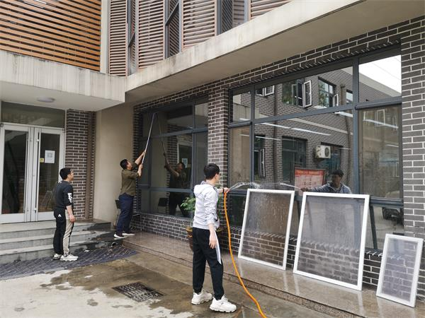 本次活動主要針對設(shè)計院的公共衛(wèi)生區(qū)域。先是擦玻璃,職工孟榮榮說:“用報紙擦吧,以前都用報紙擦,擦得很干凈?!薄澳嵌际抢宵S歷了,現(xiàn)在都用擦玻璃神器啦,我早準備好了。”趙蓓說。只見趙蓓拿出自帶了“刮水”功能的擦玻璃神器,沾上洗潔精水,吸附到玻璃窗上,不一會兒就把玻璃擦得干干凈凈。一樓設(shè)計室的外窗高,綜合辦準備了加長桿的玻璃刮子,司南帶領(lǐng)幾名青年職工認真擦拭,使窗戶變得潔凈透亮。接下來打掃辦公區(qū)域,職工們不放過一個盲區(qū)、不落下一個角落。大家對辦公室、樓道、衛(wèi)生間的衛(wèi)生死角進行清掃、噴灑消毒;對打印機、飲水機、儲物柜等公用設(shè)備進行擦拭消毒;對門把手、沖水按鈕、水龍頭開關(guān)等擦拭消毒。室內(nèi)清理完后清理小花園,大家拿著掃把、鏟子等工具,清掃拔除雜草,撿拾花池的雜物,清理衛(wèi)生死角,經(jīng)過兩個小時的勞動,辦公環(huán)境內(nèi)外煥然一新。