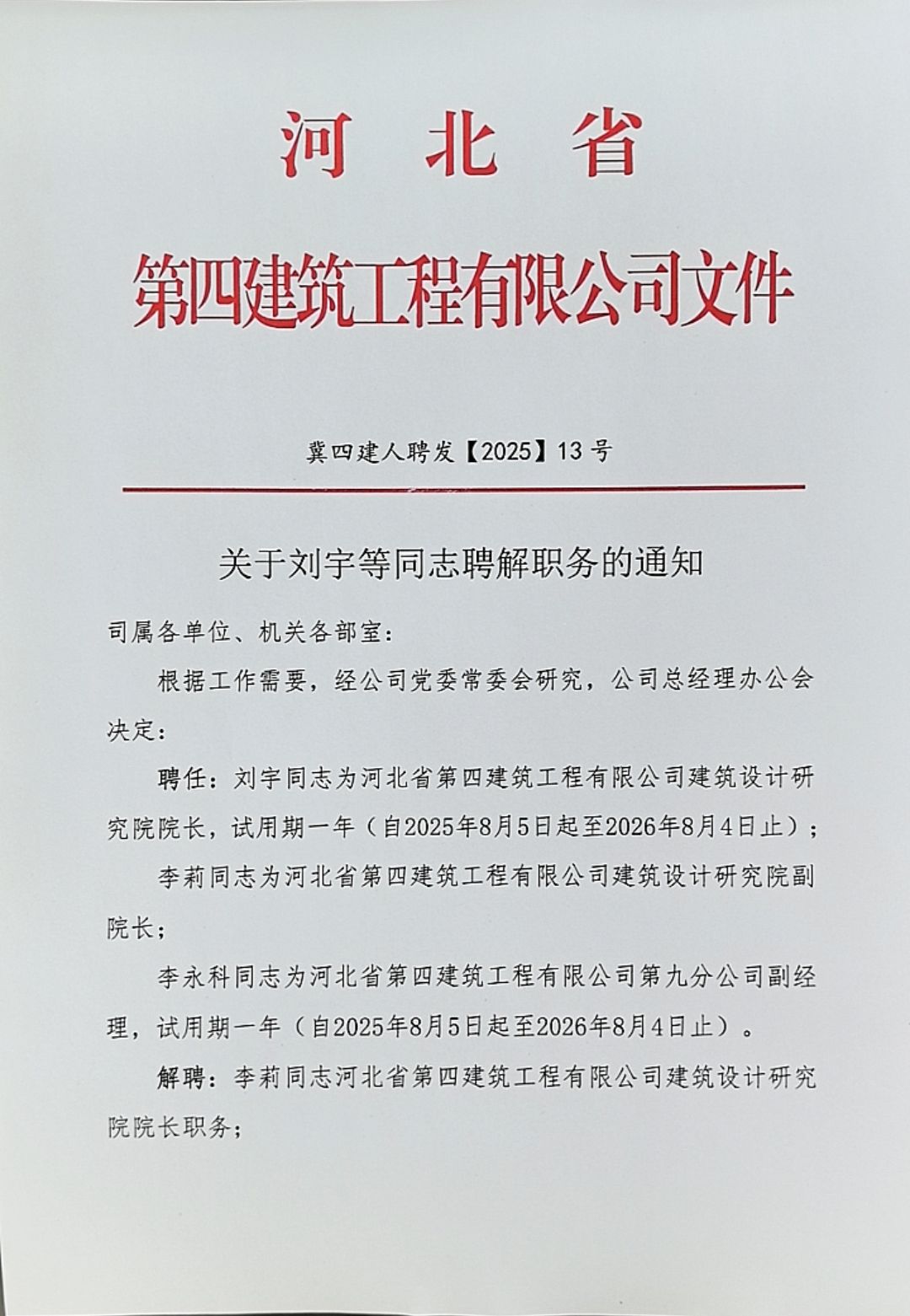 關(guān)于楊帥等同志聘解職務(wù)的通知